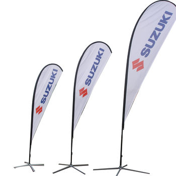 Bandera de publicidad de tela de poliéster a escala de fábrica, pancarta con plumas en forma de lágrima rectangulares para publicidad en la playa